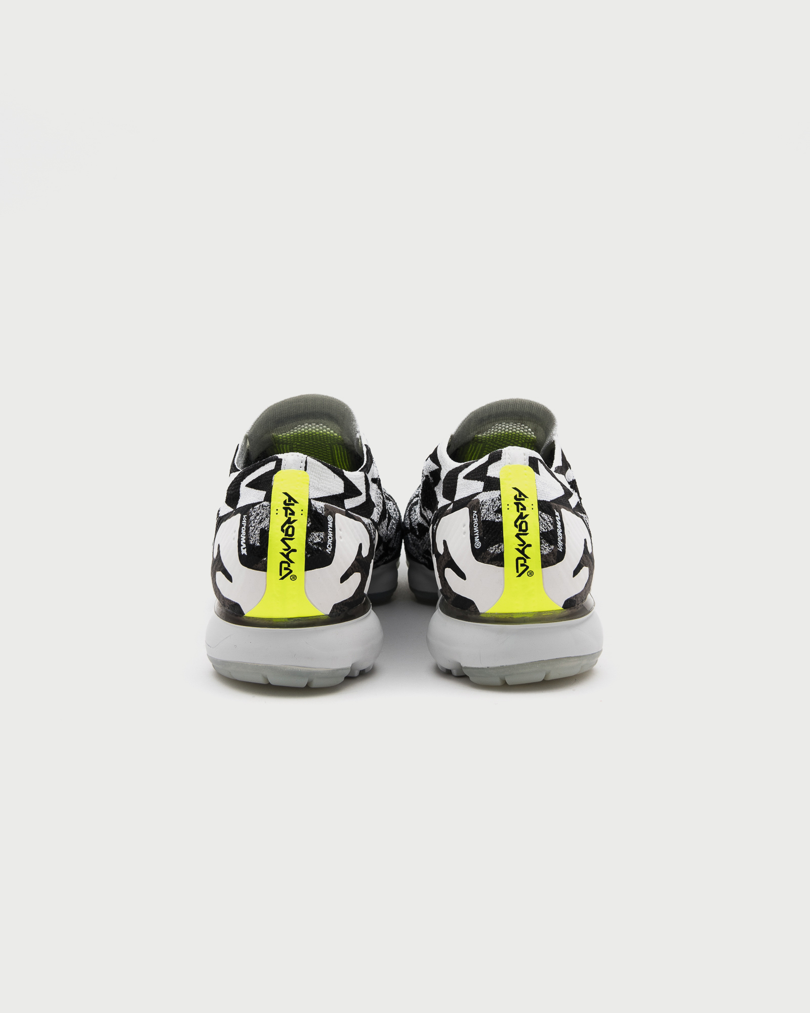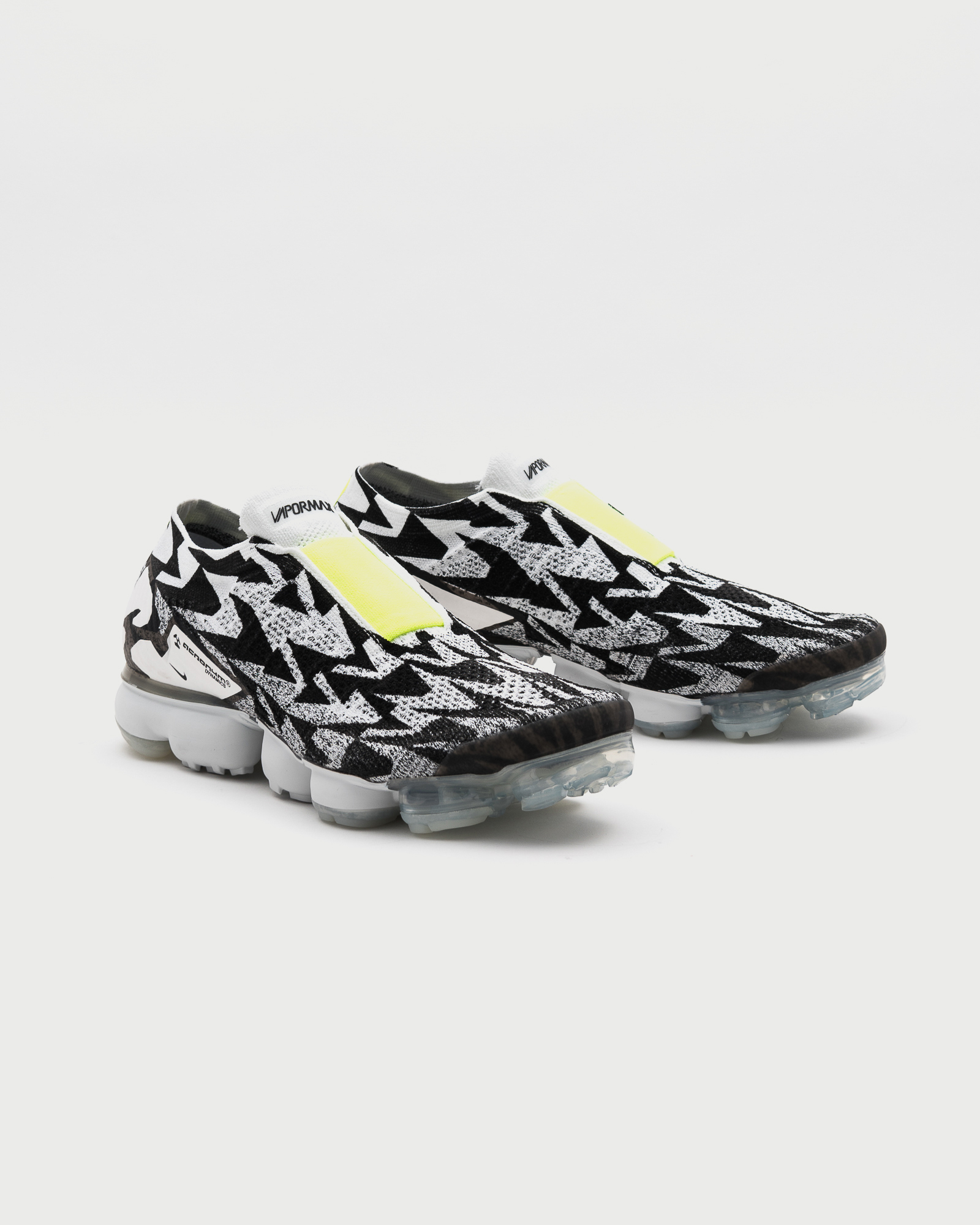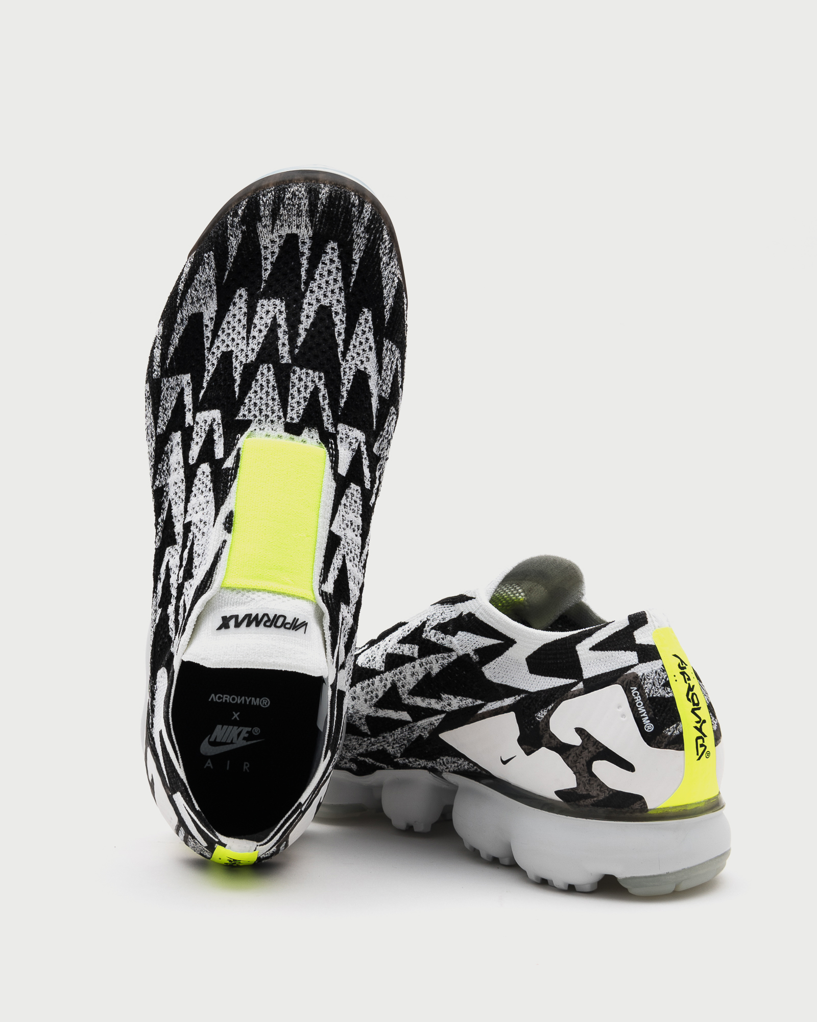 Snowy peaks inspire a lightweight upper and painted Air VaporMax unit, while a volt gore band adds a modern touch. The laceless design, modified heel clip and bold texture treatments reflect Errolson’s trademark industrial aesthetic.
