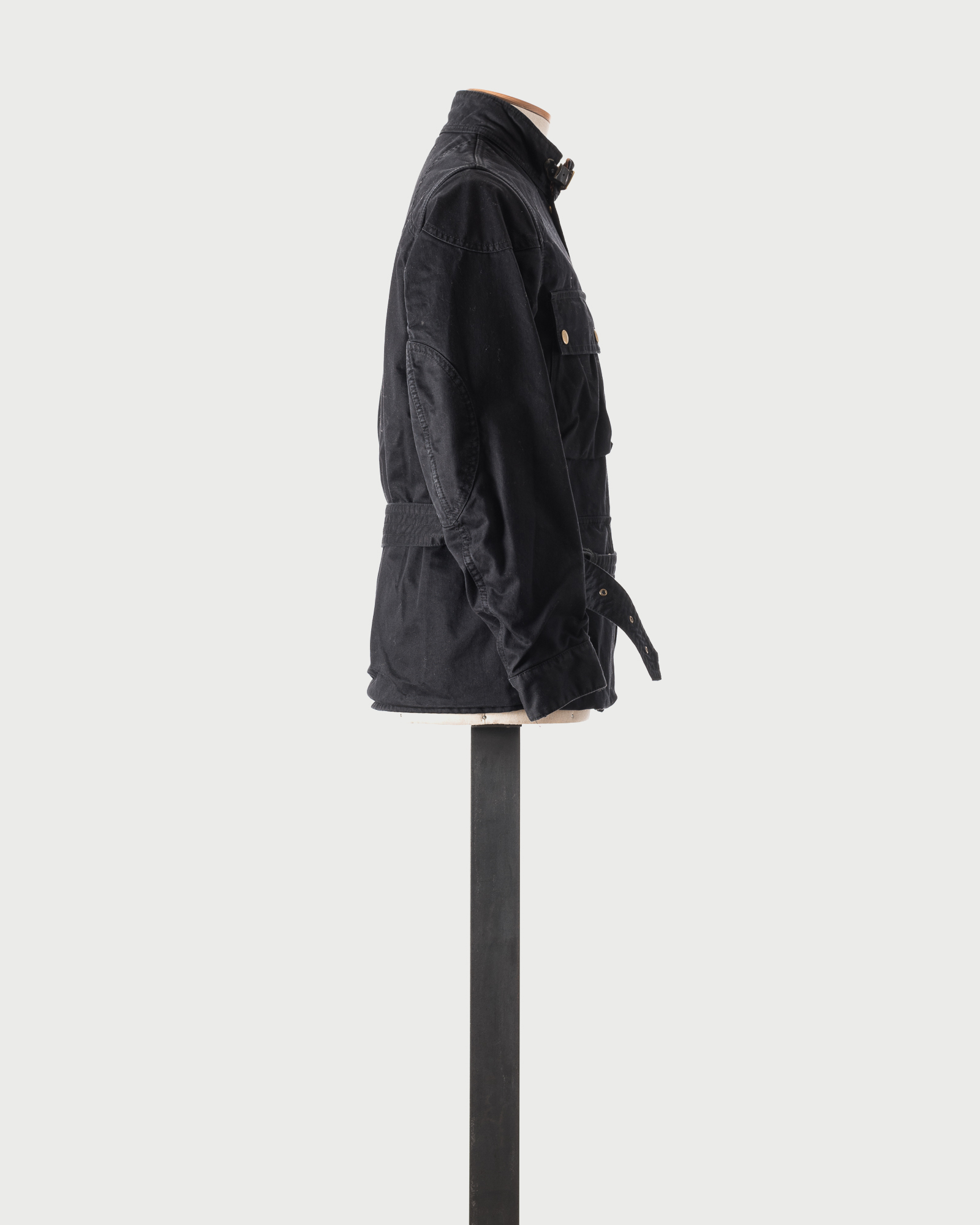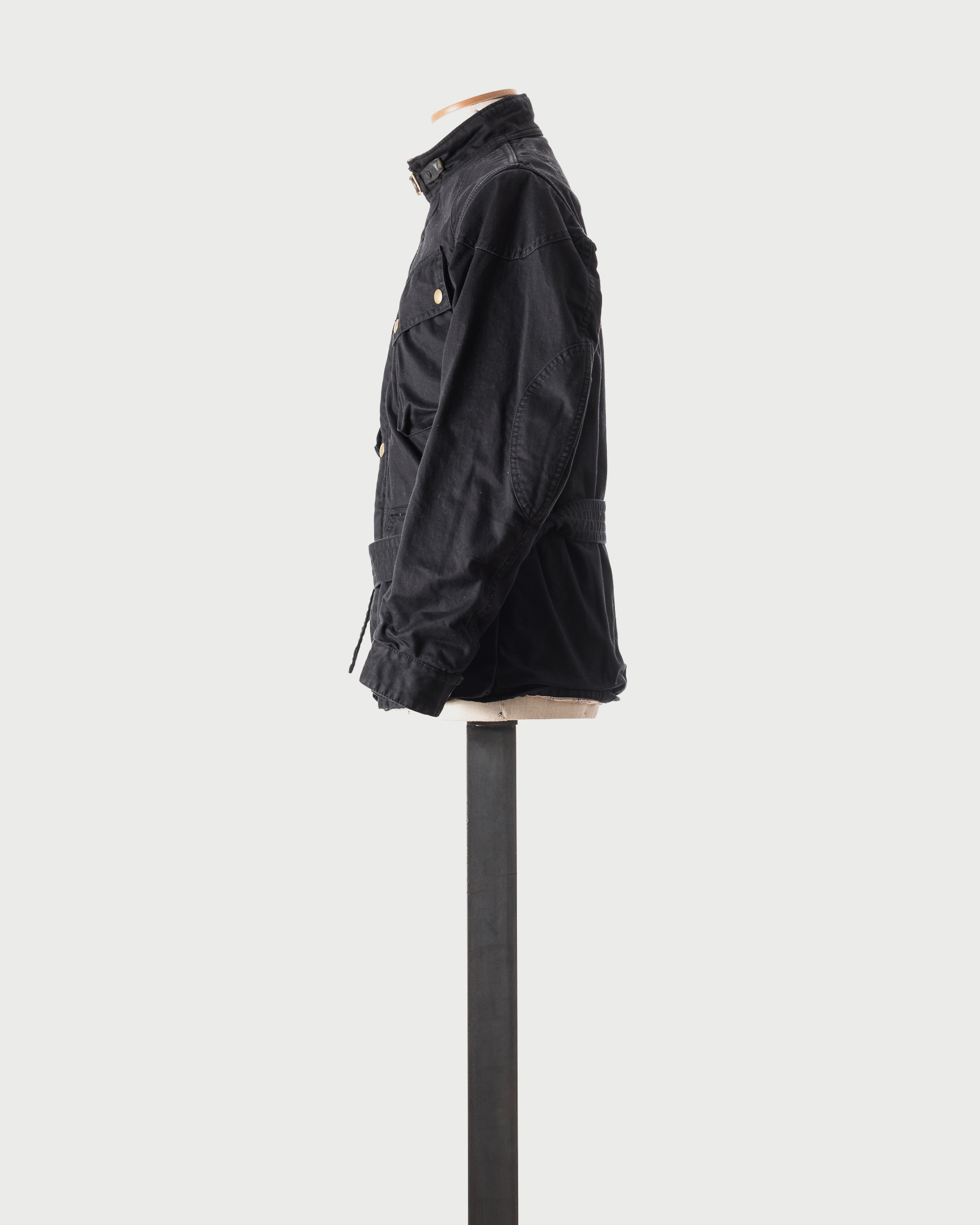 The jacket incorporates a belted waist for adjustable fit and tailored proportion, while the structured silhouette and four-pocket configuration emphasize utility and versatility. A technical yet refined outerwear piece emblematic of Visvim’s mid-2000s approach to heritage-inspired, performance-driven design.